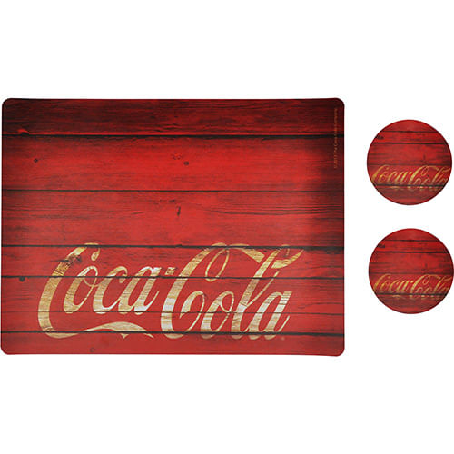 Kit para Mesa (Jogo Americano) - Coca Cola + 2 Porta Copos Textura Madeira