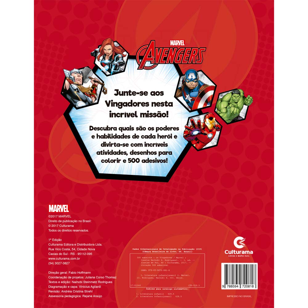 Com este livro as crianças vão se divertir pra valer. Ele vem com um perfil dos Vingadores, desenhos para colorir, atividades e com mais de 500 adesivos para colar aonde quiser.