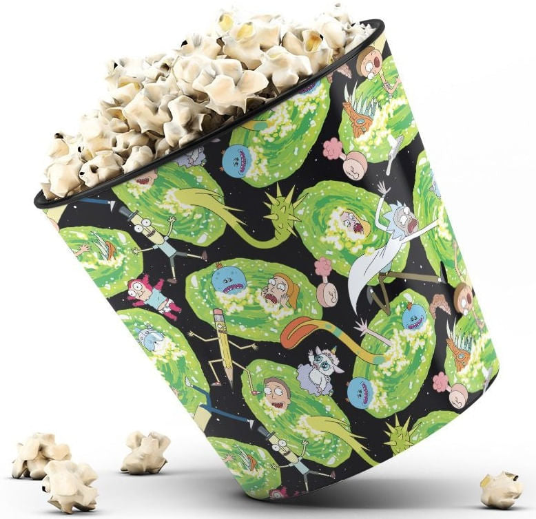 Balde de Pipoca dos portais e personagens da série Rick and Morty.