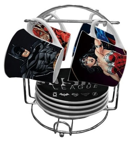 Conjunto de Xícaras da liga da justiça para tornar seu café ainda mais poderoso.