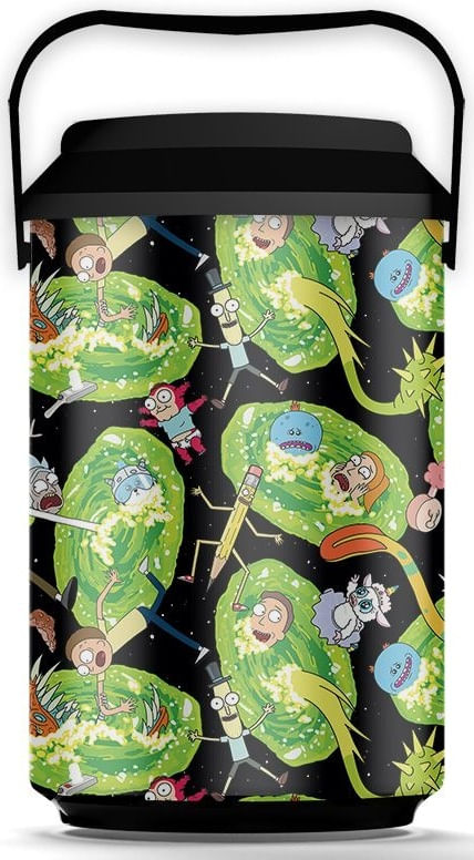 Cooler Personalizado Preto de Portais e Personagens da série Rick and Morty.