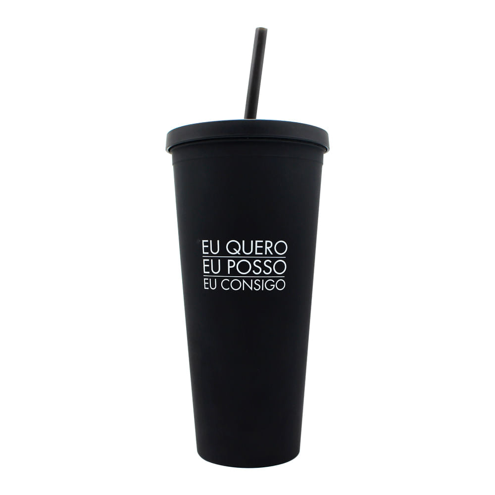 Copo com Canudo emborrachado- Tumbler Eu consigo