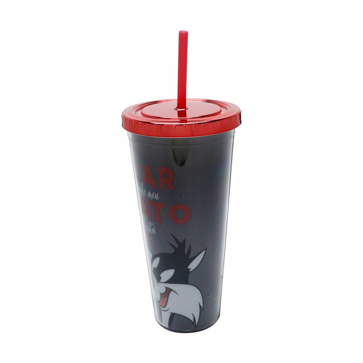 Copo com tampa e canudo personalizado dos Looney Tunes, do personagem Frajola.