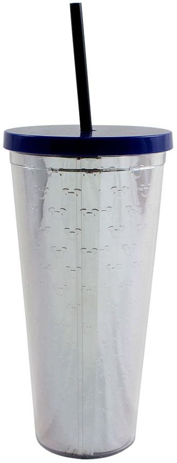 Copo com Tampa e Canudo com Efeito Metálico parabenizando os 90 anos do personagem mais icônico da Disney o Mickey Mouse.