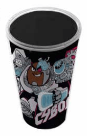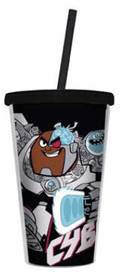 Copo com tampa e canudo do Personagem Cyborg/Ciborgue dos Jovens Titãs/Teen Titans da DC.