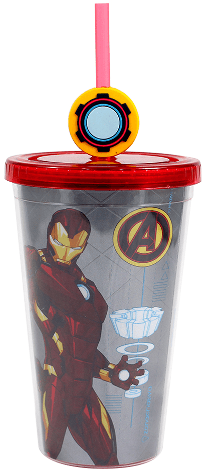 O Copo com canudo do Homem de Ferro é feito em plástico resistente de alta qualidade e com estampa metálica. O presente ideal para as crianças ou para você mesmo/a.