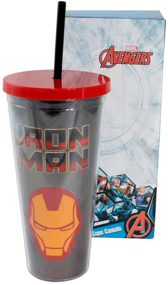 O Copo com canudo do Homem de Ferro é feito em plástico resistente de alta qualidade e com estampa metálica. O presente ideal para as crianças ou para você mesmo/a.