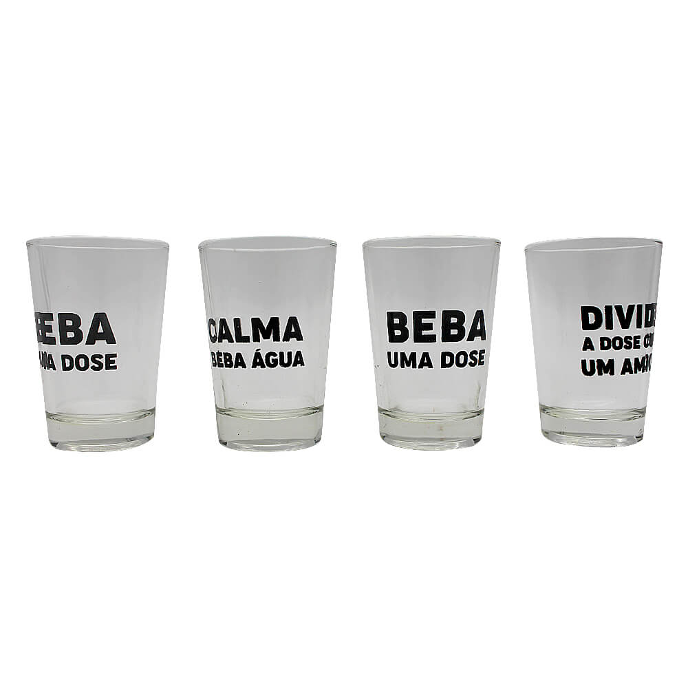Kit de 4 copos shots personalizados, acompanha roleta para se divertir com os amigos.