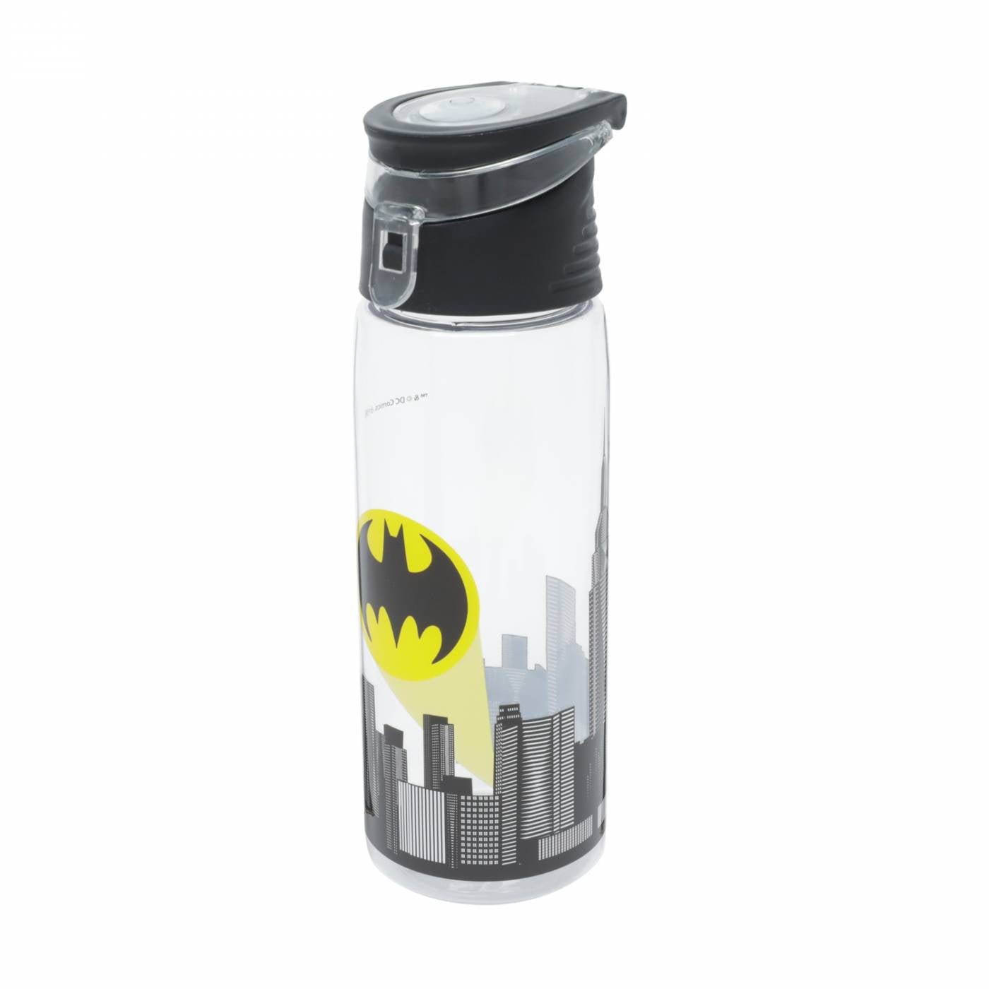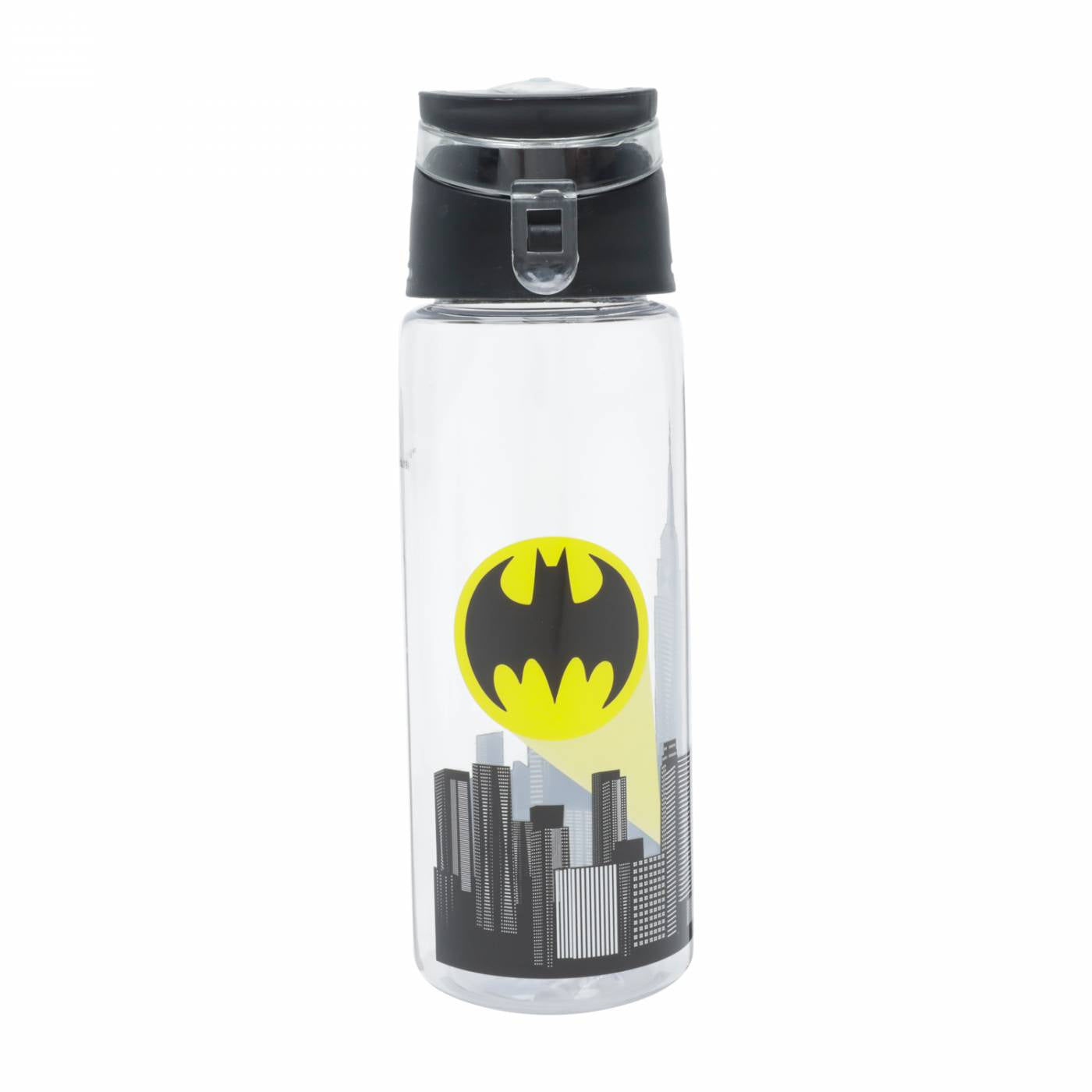 Garrafa de plástico transparente personalizado com Gotham City e o Bat-sinal.