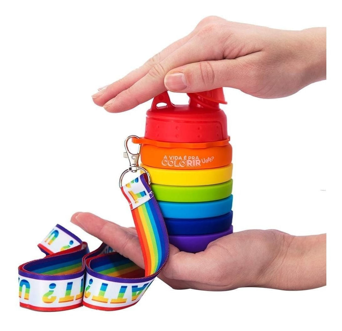 Garrafa Retrátil Com Tirante - Arco Íris