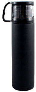 Aço inoxidável (garrafa), plásticos AS (caneca) e PP (tampa)