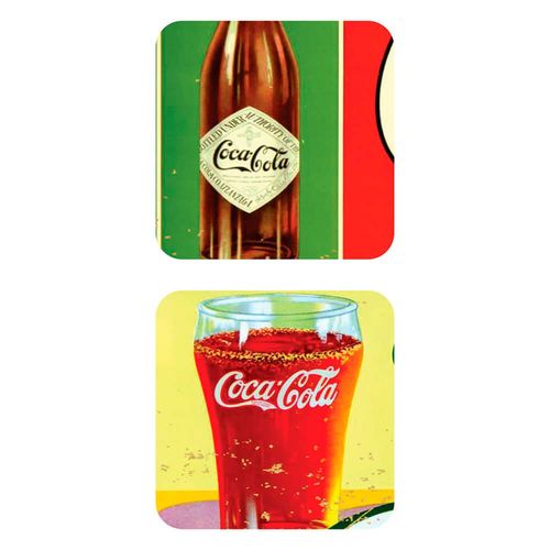 Fica lindo numa mesa posta, para uma decoração mais descolada e divertida. Esse jogo americano retangular com estampa mostrando a evolução das garrafinhas de Coca-Cola Home Collection, é simplesmente demais!! É composto por 2 jogos americanos com cortiça