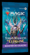 Sua próxima aventura aguarda! Cada Booster de Coleção de Terras Ermas de Eldraine de contém 12 cards de Magic, 1 card de arte e 1 card de ficha/publicidade, card de ajuda ou card da "Lista" (um card especial da história de Magic - encontrado em 25% dos boosters). Cada booster vem com uma combinação de 1-5 cards de raridade rara ou superior e 3-7 incomuns, 3-6 comuns e 1 card de terreno. Cada booster contém ao menos 1 card especial sem borda de raridade incomum ou superior. O card de terreno é um terreno de arte completa em 33% dos boosters e é metalizado tradicional em 20% dos boosters. Um card de arte carimbado e metalizado substitui o card de arte em 10% dos boosters de coleção.