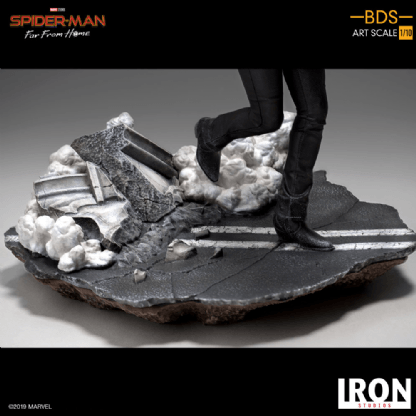 A estátua de Maria Hill é parte de um diorama de batalha baseado no filme de sucesso Homem-Aranha: Far From Home.
