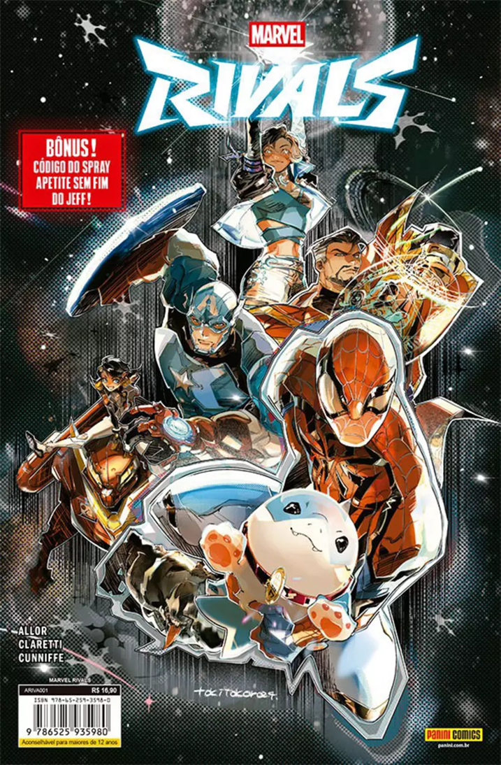 Diretamente da novíssima sensação dos videogames! A fenda temporal perturbou a Teia da Vida e do Destino, deixando os heróis do mundo em conflito para decidir a melhor forma de consertá-la. Um grupo, liderado por Peni Parker, quer conectar a teia ao ciberespaço para repará-la. O outro, liderado pelo Homem-Aranha, prefere uma abordagem mais conservadora, buscando fortalecê-la e permitir que se regenere sozinha. A fenda temporal transforma todos em rivais. mas qual equipe superará a outra? GRÁTIS: código para desbloquear conteúdo extra do game!