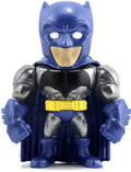 Réplica em metal do personagem Batman, com o uniforme cinza e azul.