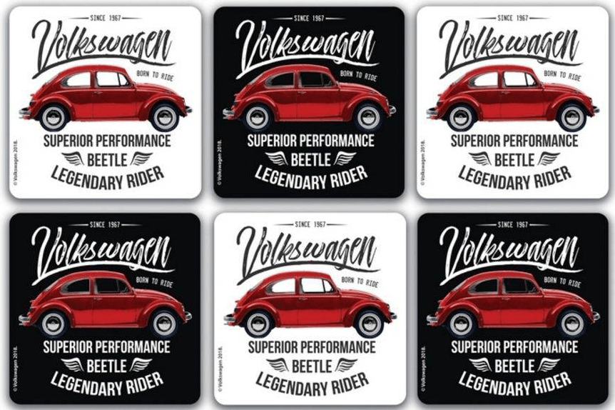 Jogo de 6 porta-copos em cortiça da linha VW Fusca. Cada peça possui 10 x 10 cm. Os porta-copos VW Fusca foram desenvolvidos para oferecer mais estilo, praticidade e segurança na hora de receber convidados especiais. As peças permitem que copos e taças se