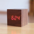 Relógio de Madeira Quadrado de LED, também com temperatura e data, da cor tabaco