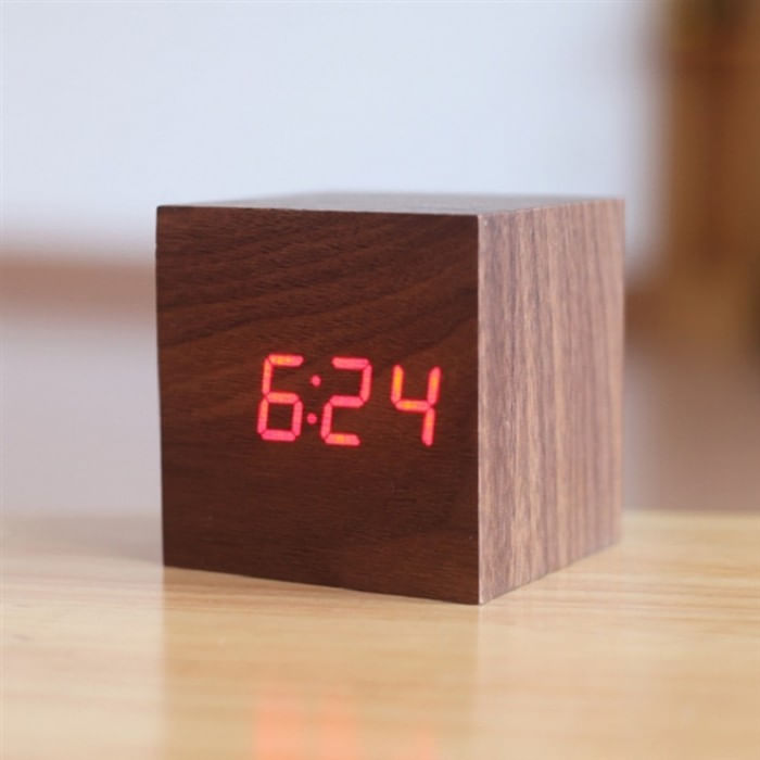 O Relógio de Madeira Quadrado quando está desligado parece apenas um bloco de madeira para decorar a casa. Ao ligá-lo você pode ver o relógio digital de LED, através de uma fina camada de madeira.