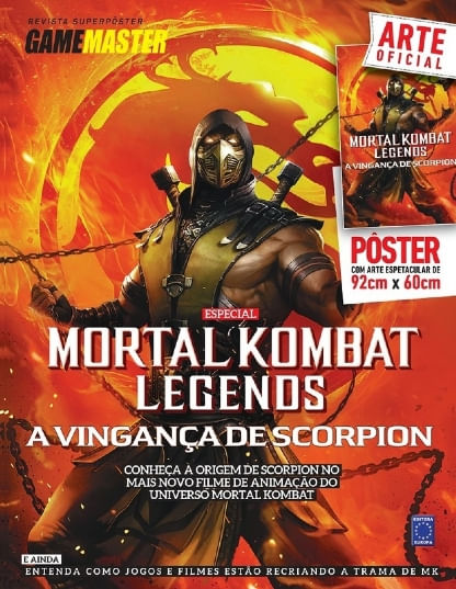 PÔSTER EXCLUSIVO COM ARTE ESPETACULAR DE 92CM X 60CM Conheça a origem de Scorpion no mais novo filme de animação do universo Mortal Kombat. E ainda: Entenda como jogos e filmes estão recriando a trama de Mortal Kombat.