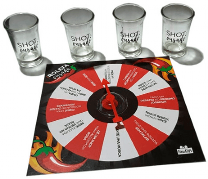 Para iniciar o jogo, todos da roda devem tomar um shot e assim decidir quem será o primeiro a rodar a roleta.