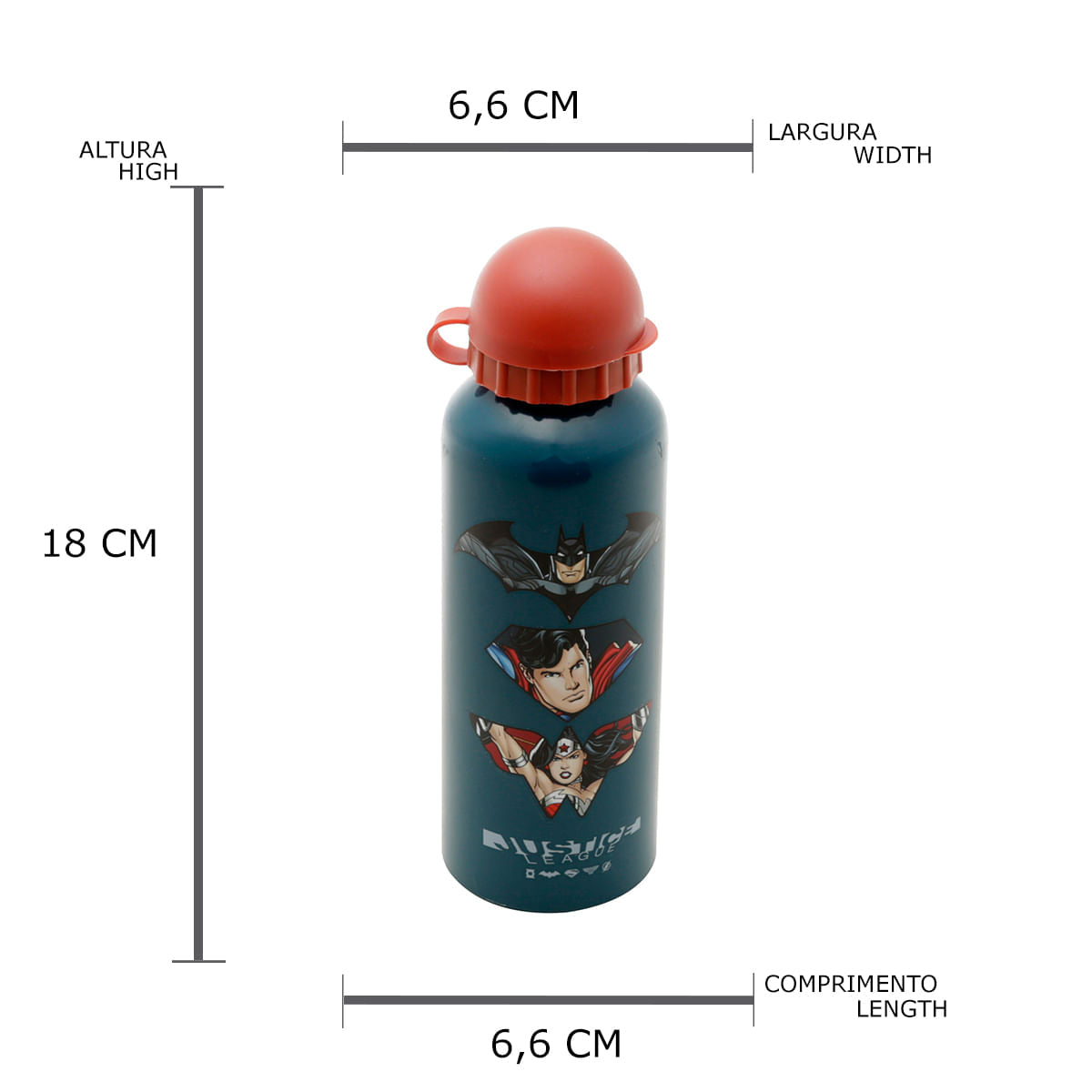 Cause inveja nos squeezes normais! Todo super-herói como você, precisa se hidratar! Por ser de alumínio, é leve e protege bem a bebida sem derramar, mesmo durante as mais radicais aventuras.
