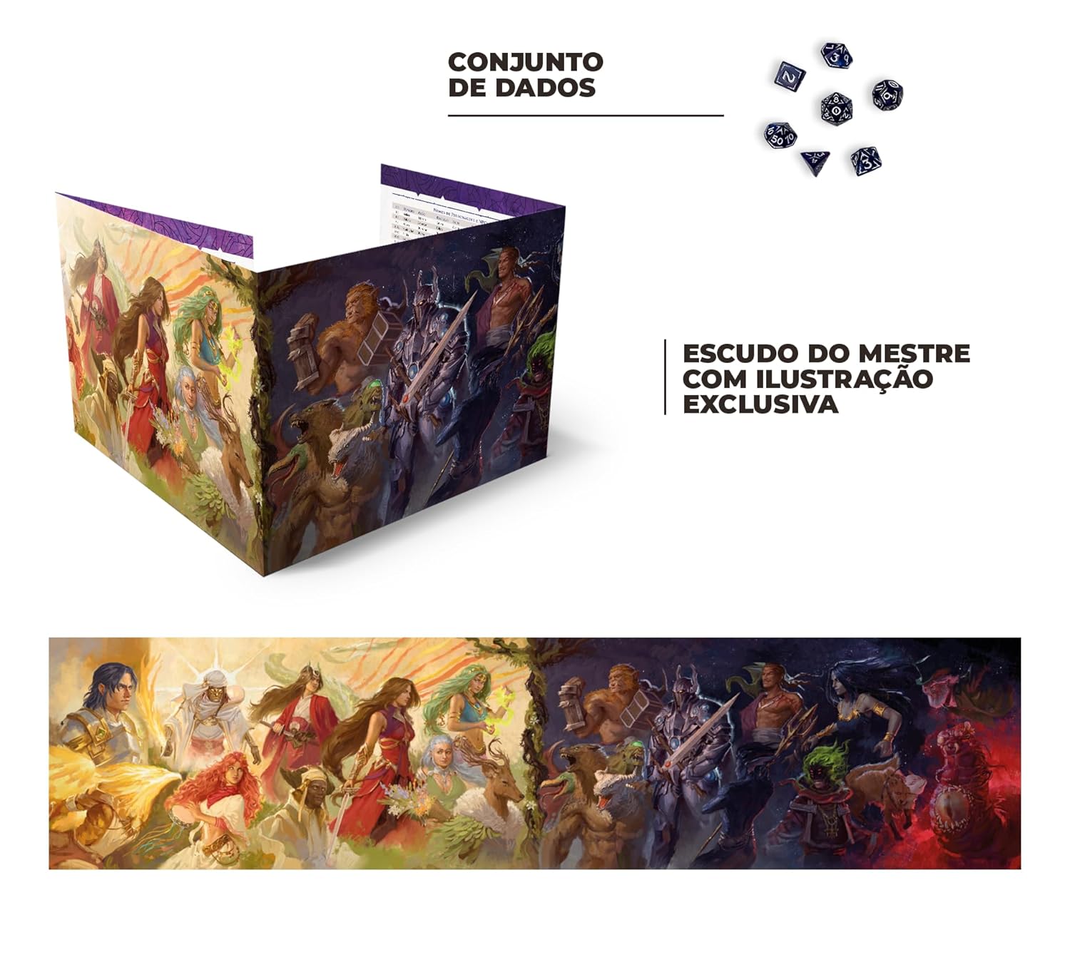 . Escudo do mestre - Com abas rígidas e arte inédita representando os vinte deuses do Panteão e novas informações internas;