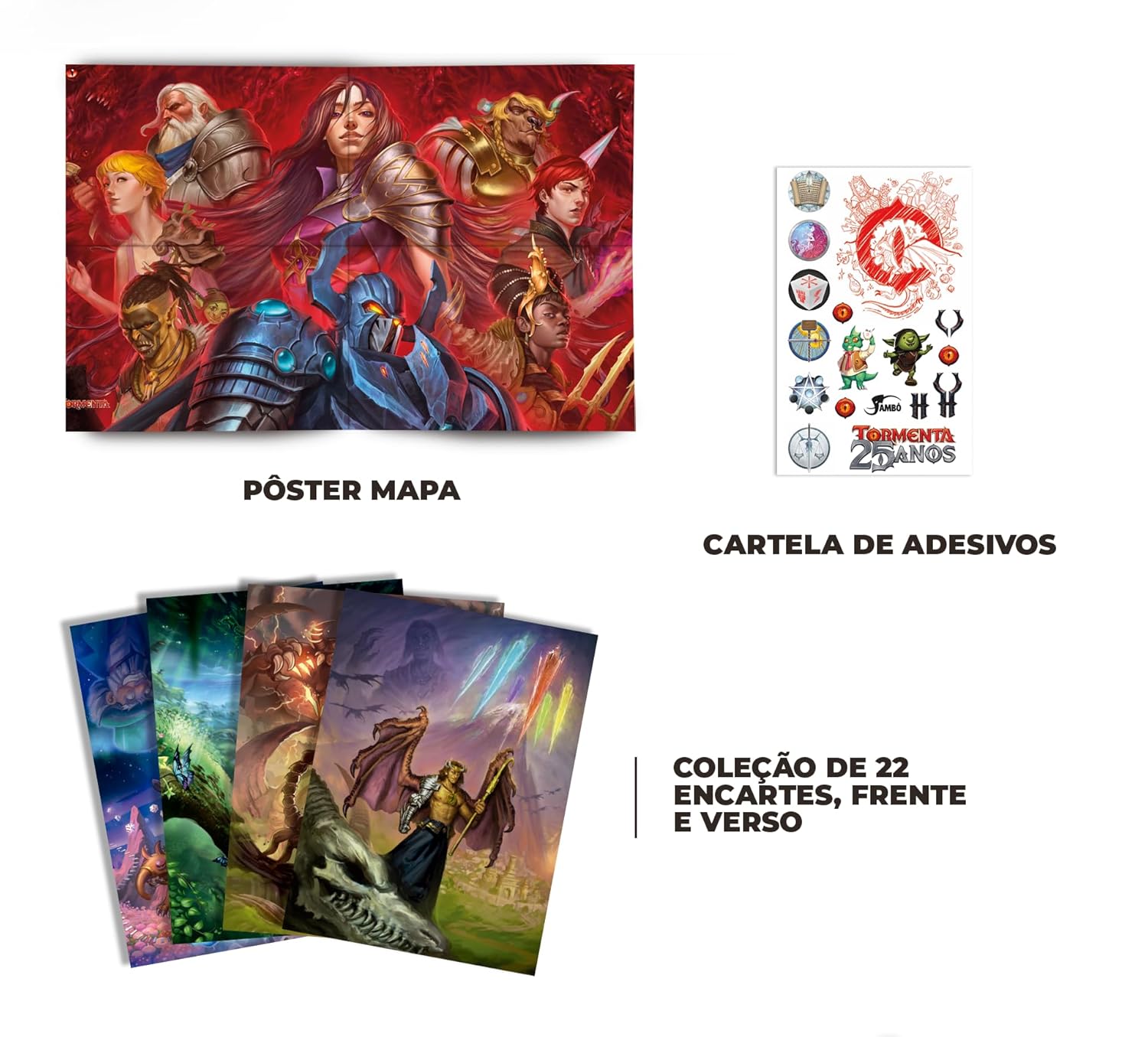 . Coleção de 22 encartes - Coloridos e impressos em papel de alta gramatura, trazem os mundos dos deuses, com ilustrações inéditas em um lado e informações descritivas no outro, para você levar sua campanha aos limites da Criação!