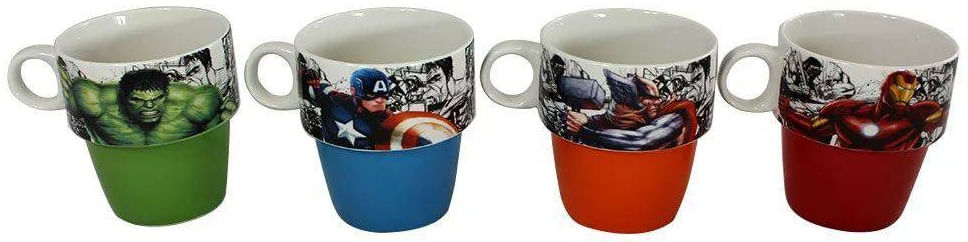 Kit de 4 canecas dos Vingadores da Marvel.