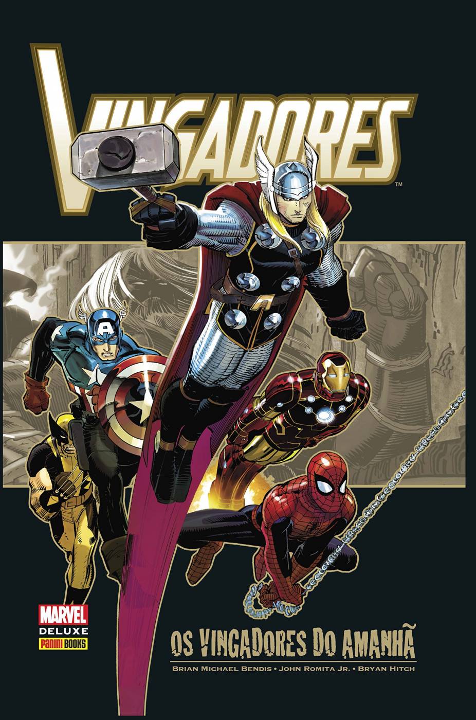 HOMEM DE FERRO. THOR. CAPITÃO AMÉRICA. Eles têm sido o coração, a alma e o espírito de luta dos Vingadores desde que os integrantes da equipe se reuniram pela primeira vez. Três dos Mais Poderosos Heróis da Terra que se aliaram para enfrentar as ameaças que nenhum herói conseguiria enfrentar sozinho. Agora, com a chegada de uma nova Era Heroica, este trio novamente encontra um motivo para se reunir, e tendo heróis como Gavião Arqueiro, Homem-Aranha, Wolverine e Mulher-Aranha ao seu lado, esta pode ser a mais poderosa versão dos Vingadores de todos os tempos. e é bom que seja mesmo, afinal, com o retorno de Kang trazendo péssimas notícias do futuro, a respeito de uma força terrível com a qual nem mesmo ele é capaz de lidar, o Homem de Ferro convoca os Vingadores para entrarem em ação. Mas tal adversidade pode vir na forma de rostos bastante familiares. e quando um criminoso escapa da prisão para sair à caça das Joias do Infinito, os Illuminati precisam voltar à ativa para detê-lo, mas será que os poderes combinados dos Vingadores, Novos Vingadores e Vingadores Secretos será o bastante para vencer um vilão cosmicamente potencializado? Este volume de 356 páginas reúne as edições 1 a 12 e 12.1 da revista The Avengers.